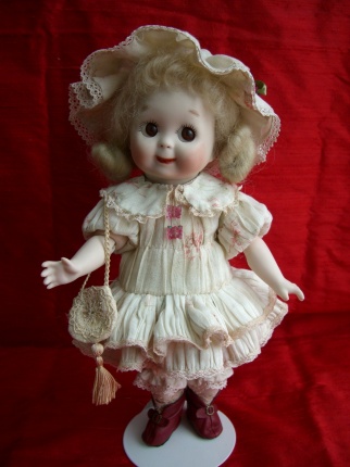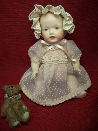 村上知恵子さんの作品です。 ベビードールさんのお力添えをいただいてサクラビスクのレプリカを作りました。 おめめは、ちゃんとネンネしますよ。 |