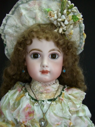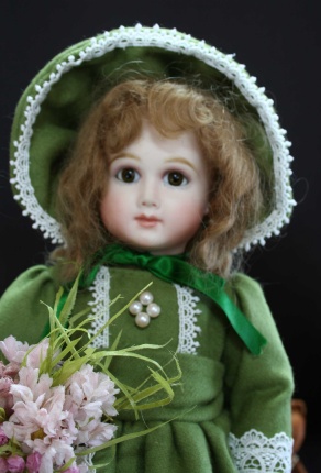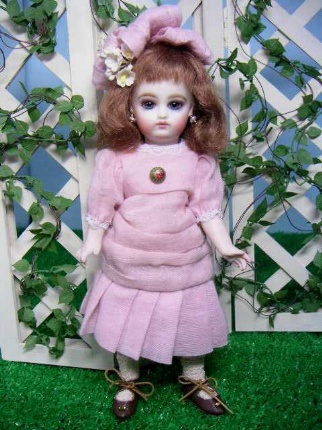 小さな人形が大好きなharaさんのジュモーリリックです。 初夏にぴったりのさわやかな仕上がりです。 ワイヤー入りのボンネットで全体がさらにアップしました。 |
