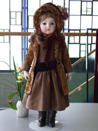 講習会のブリューがやっと出来上がりました。 作者の吉本タエ子さん曰く、「やっと満足のいく人形ができた」と。 ほんとにシックな中にも存在感のある作品になりました。 |
