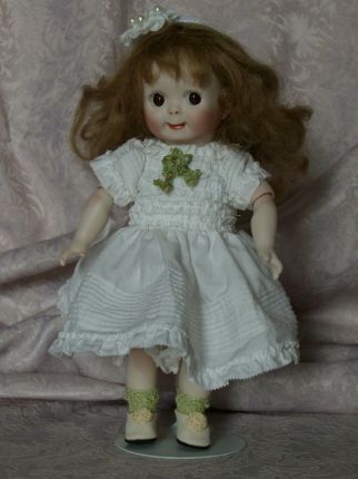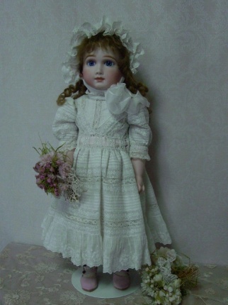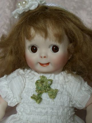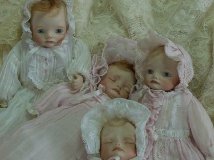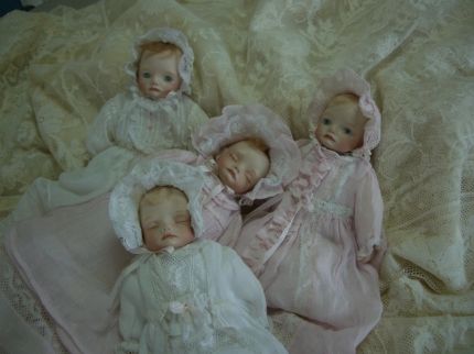 目を閉じた子と開いた子のペアです。 幼い表情ではありませんが、出来上がってみるとなんともかわいい!ベビードレスがまたGood。 坂本さんの作品です。やっぱり。。。ですね。 |