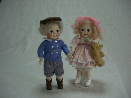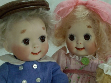 柴田典子さんのグーグリーペア、若いセンスが生きています。 ペアの人形はストーリーがあって楽しいですね。 この子達、きっとリードは女の子ね。 |