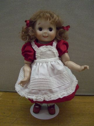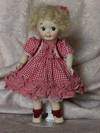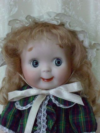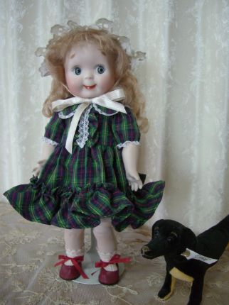 プレゼント用に作られました。 チェックのワンピーにべビィ帽が相性ぴったりです。 若干上すぎた眉が妙に愛らしく和ませてくれます。 芳村智恵さんの作品です。 |