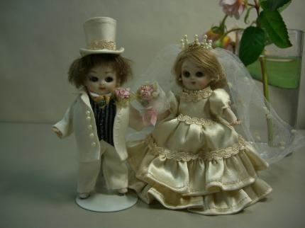 ![]() ![]() ゼム(10.5センチ) もうすぐご愛息の結婚式。小さなゼムのペアがウエディングドールの大役を果たします。 小さいけれど、ちゃ〜んとウエディングとモーニング、ほんまもんみたいです。吉本タエ子さん。 |