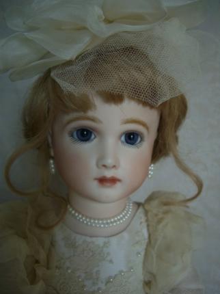 ![]() ![]() アーティー(43センチ) こちらもウエディングです。初々しいけれど芯のある顔立ちは花嫁さんにぴったりです。 袖口とフロント部分がポイント、小林康子さんのこだわりに脱帽です。 |